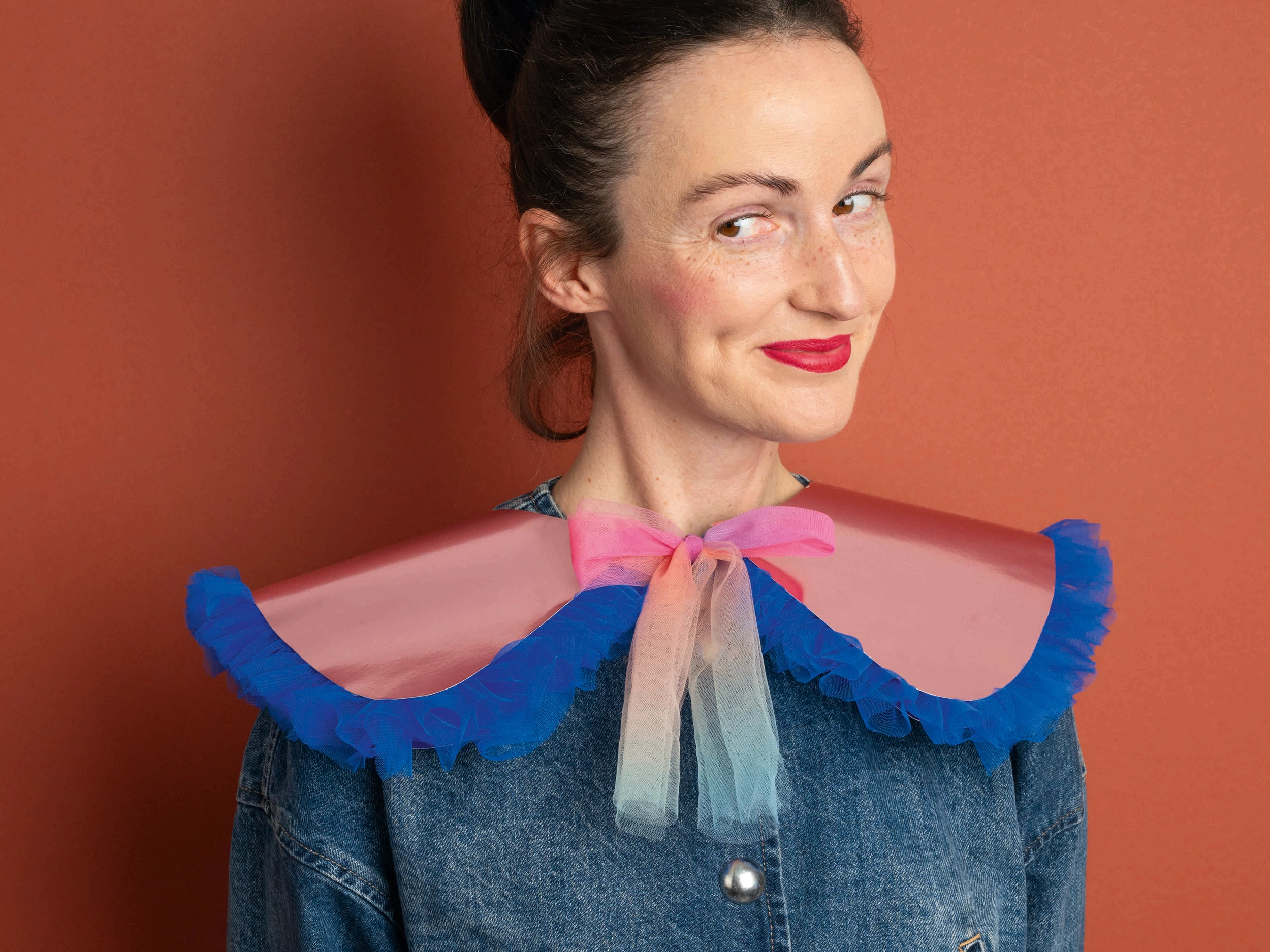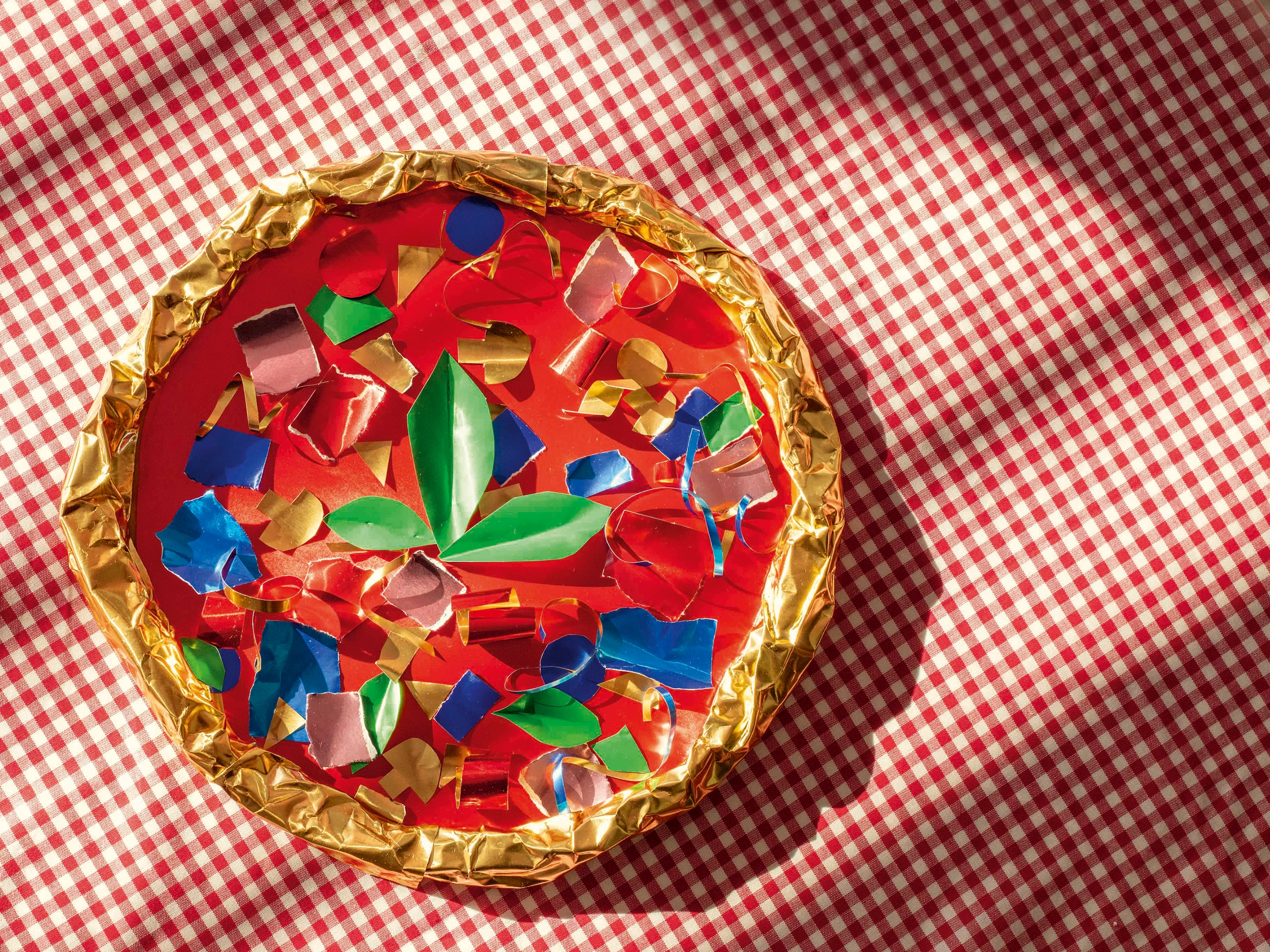 - Klebe die Rechtecke an der Kante mit doppelseitigem Klebeband vorsichtig zu einem Lampenschirm zusammen.