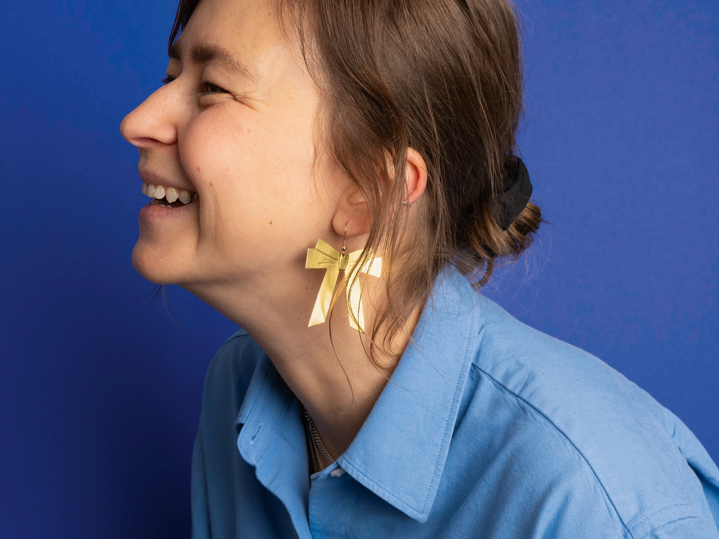 - Schneide die Vorlage aus und übertrage sie jeweils 4x zwei verschiedene Farben des Alu-Bastelkartons, z.B. blau und rosa.