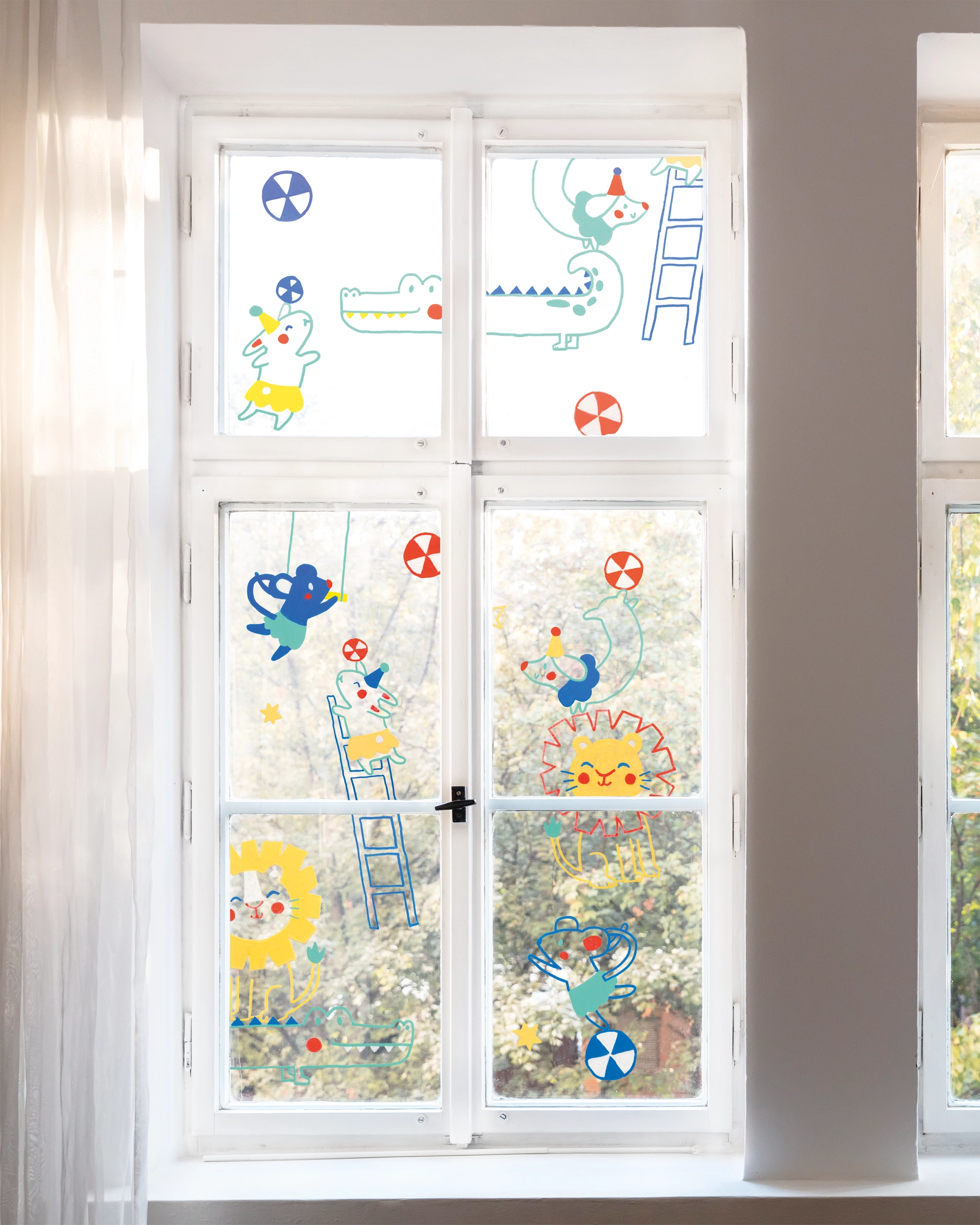 You can really let off steam with our free coloring pages: Sometimes cute hedgehogs, nimble bunnies and autumn leaves romp around the window, sometimes colorful circus animals dance across the pane and show off their tricks. Or you can conjure up delicate flowers and sweet strawberries with the chalk markers. The templates are available in different sizes, perfect for small and large painting projects. Your home will be a real eye-catcher! No brushes, no mess - just you, a few colors and a lot of imagination. Download our templates now, grab your chalk markers and get started!