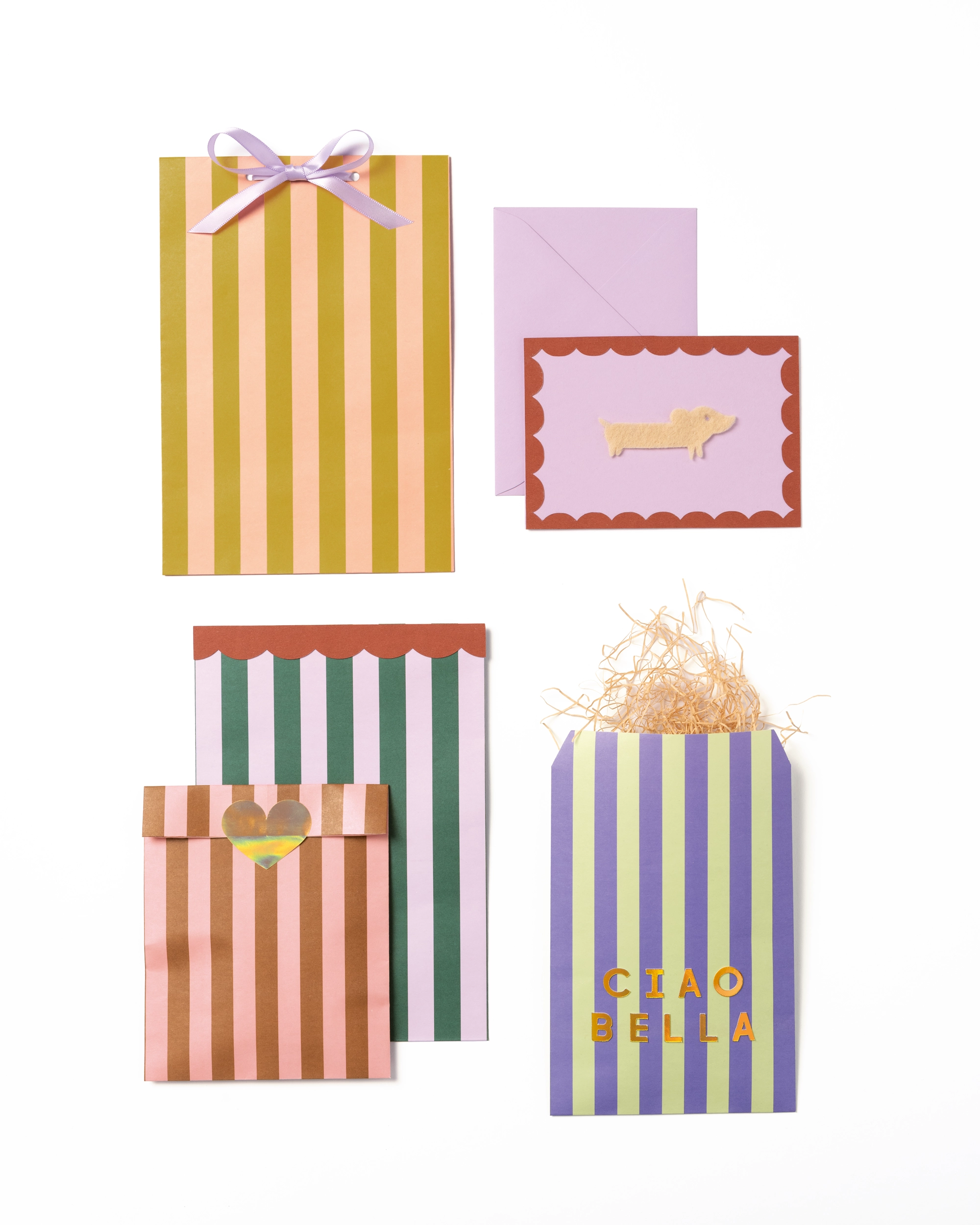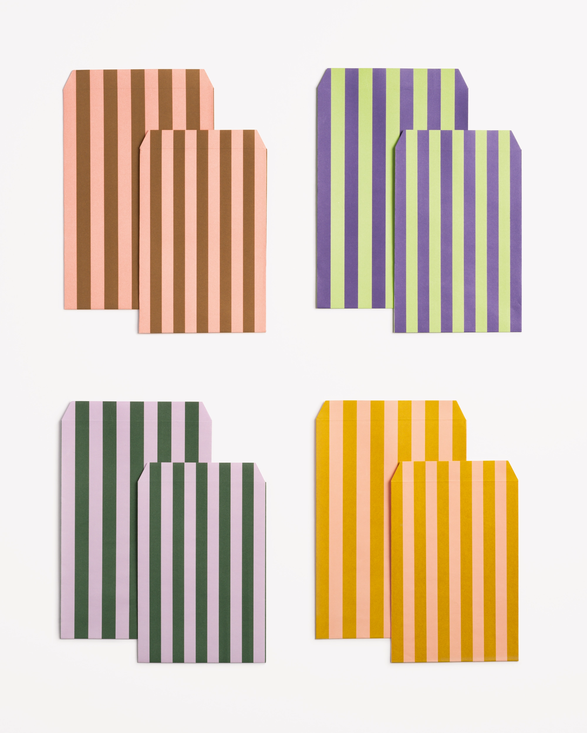 Big striped love in flat paper bags: Sorted in two sizes, they bring a pop of color to any moment –