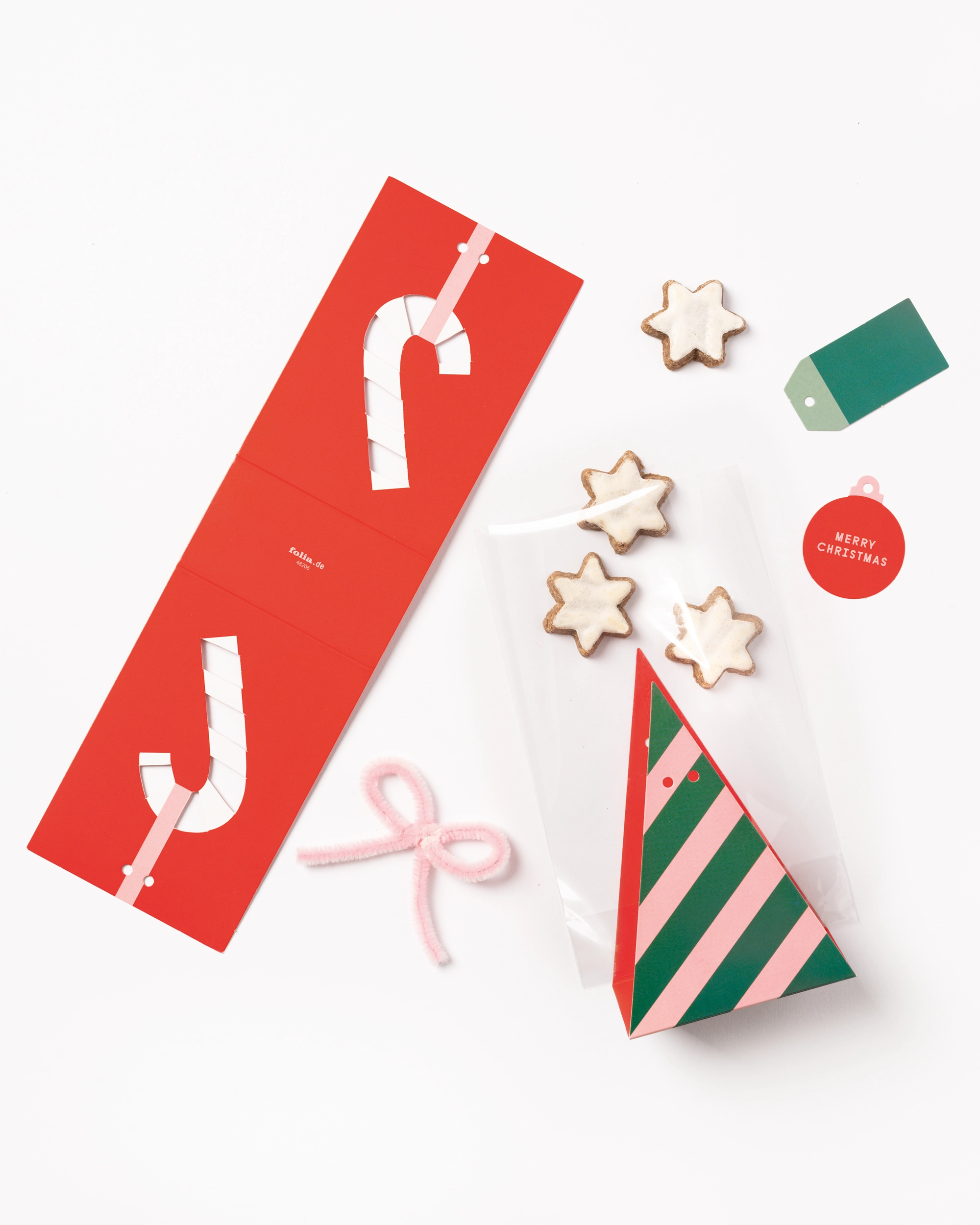 This lovingly designed set turns your homemade treats into tiny Christmas delights! The paper sleeves are shaped like little fir trees and candy canes, giving your cookies, biscuits, or chocolates a festive and charming look.