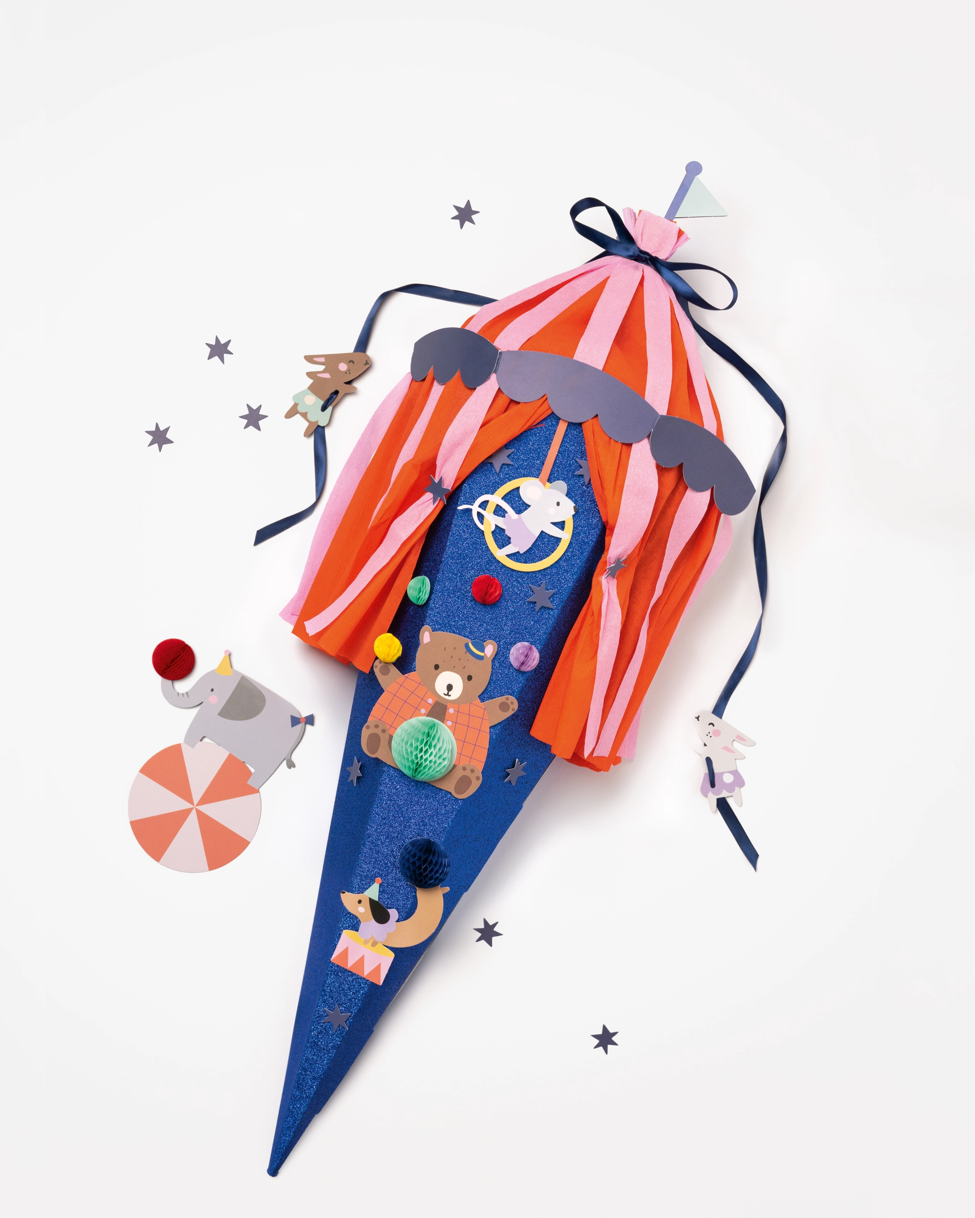 Step right up for little circus stars. These school cone patches with cheerful circus motifs add movement, color, and lots of fun to any school cone. The die-cut designs can be turned into lively 3D highlights in no time thanks to the included honeycomb stickers. Attached with 3D adhesive pads, the animals and characters look almost ready to jump into action.