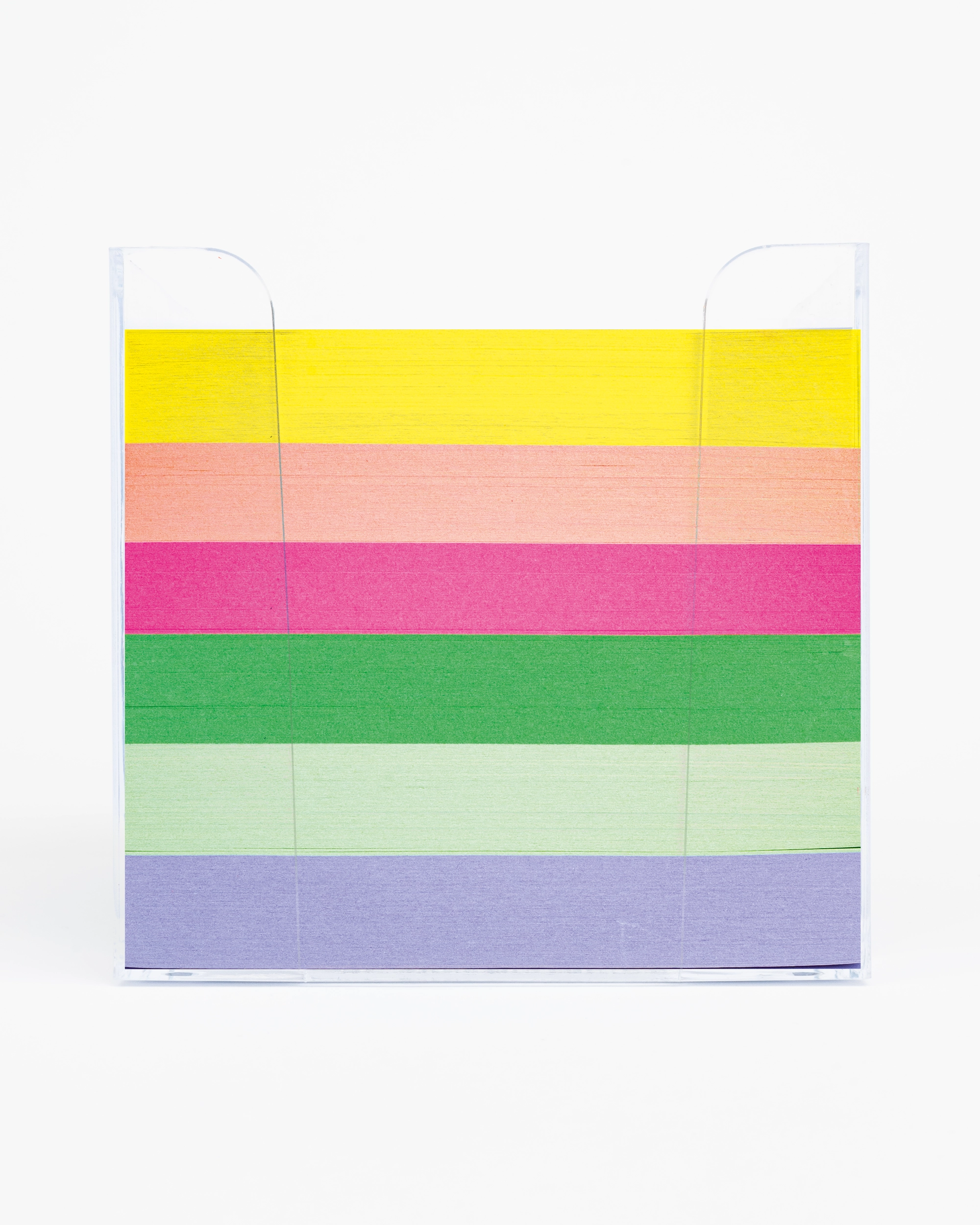 Diese Notizzettel-Box bringt Farbe ins Denken. In einer transparenten Box stecken 700 Notizzettel in leuchtenden Regenbogen-Farben – übersichtlich sortiert und immer griffbereit.