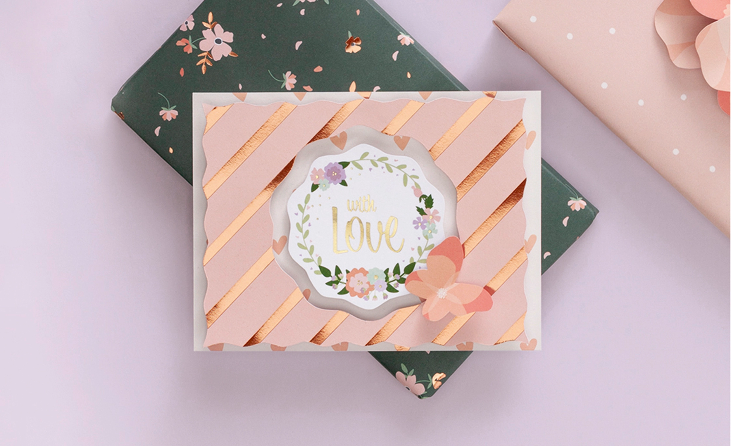 - Übertrage die Ringvorlage auf den Block und schneide den Ring mit einem Cuttermesser aus. Du kannst den Ring mit einem Motivpapier deiner Wahl kaschieren oder den natürlichen Look der Graupappe lassen.